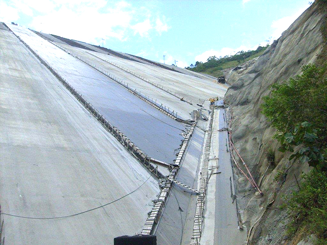 The Porce 3 Dam near Medellin, Colombia is classified as a concrete-face, rock-fill type embankment dam. As such, a concrete footing (plinth) is required and constructed around the upstream edge, serving to connect the dam with the valley walls and floors. Its role is also to prevent water leakage around the edges of the dam. Xypex Concentrate was selected to ensure the proper waterproofing of the plinth as well as 8,000 m2 of dam slabs.