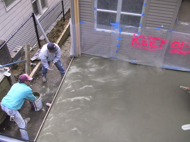 These townhouses backed onto a concrete slab. The slab had hairline cracks, mostly from utility box knock-outs and pipe penetrations. The developer requested Xypex Admix C-1000 but because the topping deck was so thin in many places, the Xypex representative recommended an alternate Xypex system: cracks were treated with Xypex Concentrate, with Xypex DS-1 as the primary waterproofing feature.