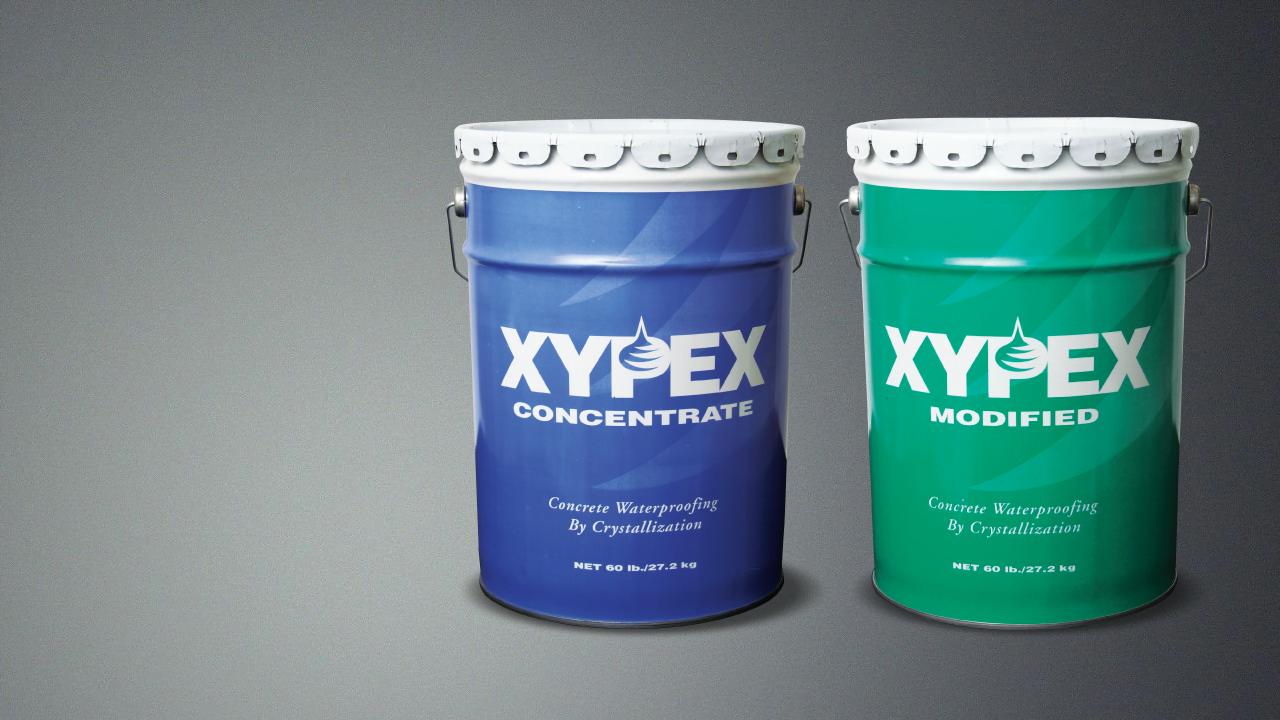 Xypex Concentrate is available in 20 lb. (9.1 kg) pails, 50 lb. (22.7 kg) pails and bags.