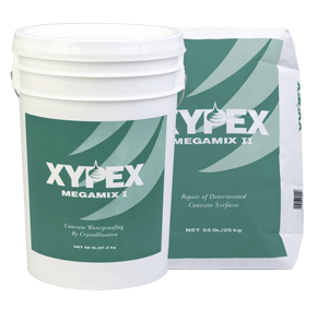 Xypex Megamix II is a thick repair mortar for the patching and resurfacing of deteriorated concrete. Megamix II has been specifically formulated to produce superior bond, low shrinkage, chemical durability and high strength. It is a one component mortar and can be either sprayed or trowel applied at a thickness of 3/8″ – 2″ (10 – 50 mm).
