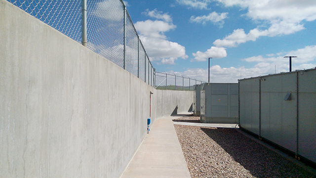 With a new major cellular security site nestled against a wet hillside, keeping water away from this site was paramount. Xypex Concentrate, Modified and Patch'n Plug were chosen to treat 10,000 sq. ft. of concrete.