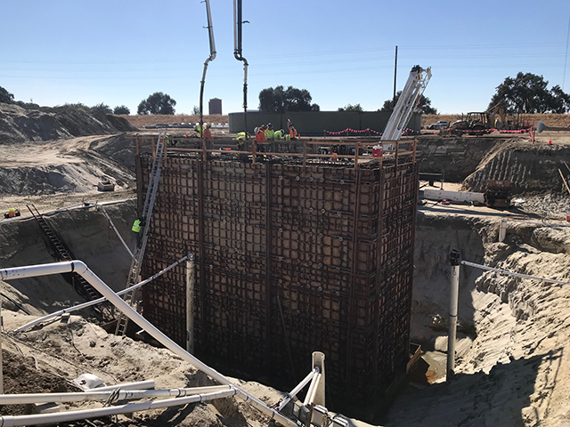 Xypex Bio-San C500 admixture was proposed by PACE Advanced Engineering and then chosen by the City of Lathrop as an alternative to the specified system. Bio-San C500 contains Xypex’s antimicrobial crystalline technology. This technology kills the Thiobacillus bacteria which cause the acid corrosion of concrete as well as preventing the infiltration of ground water and exfiltration of sewage liquid. As Bio-San C500 is added to the concrete at the time of batching, significant cost and construction schedule savings were achieved when compared to the initially specified epoxy coating: there was no need to install and detail the interior coating.