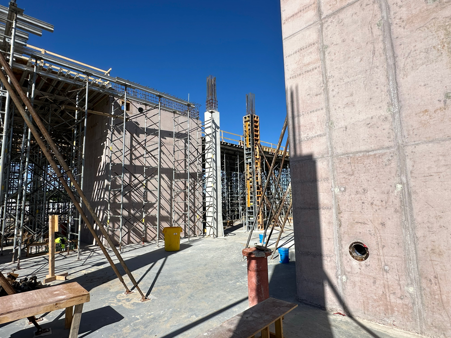 Xypex Bio-San was incorporated directly into the concrete mix as an integral admixture to provide permanent protection against microbial induced corrosion. The bio active mineral solids inhibit the growth of acid producing bacteria, while the crystalline technology reacts with moisture to form non soluble crystals throughout the concrete matrix. This reaction permanently seals capillaries and micro cracks, improving resistance to water ingress and chemical attack. Bio-San was used in the sludge holding tanks and overhead slab to ensure long term durability in high exposure wastewater conditions. By using Xypex Bio-San as an integral solution, the project team eliminated the need for external coatings or membranes while achieving long term corrosion resistance and waterproofing performance.