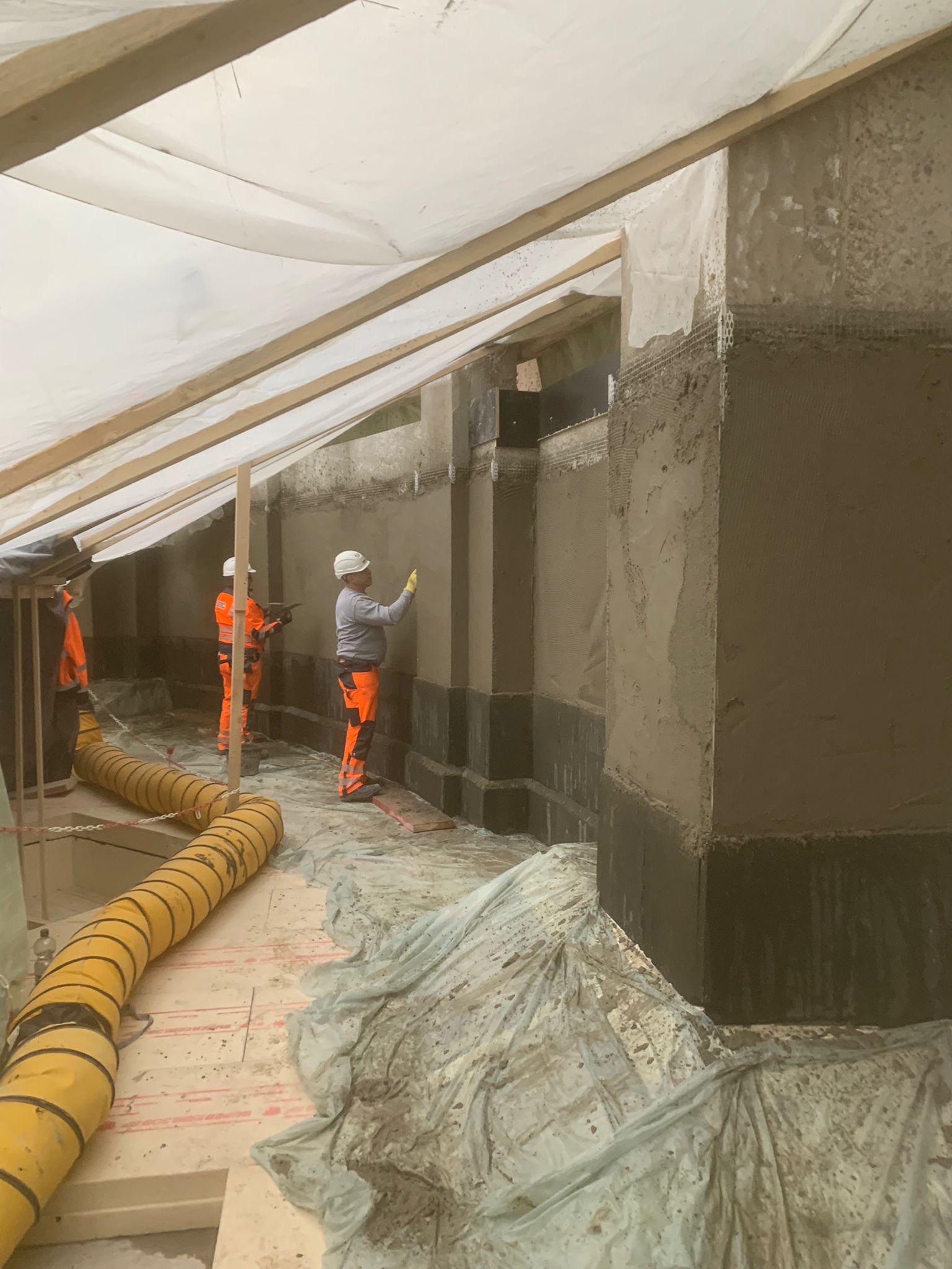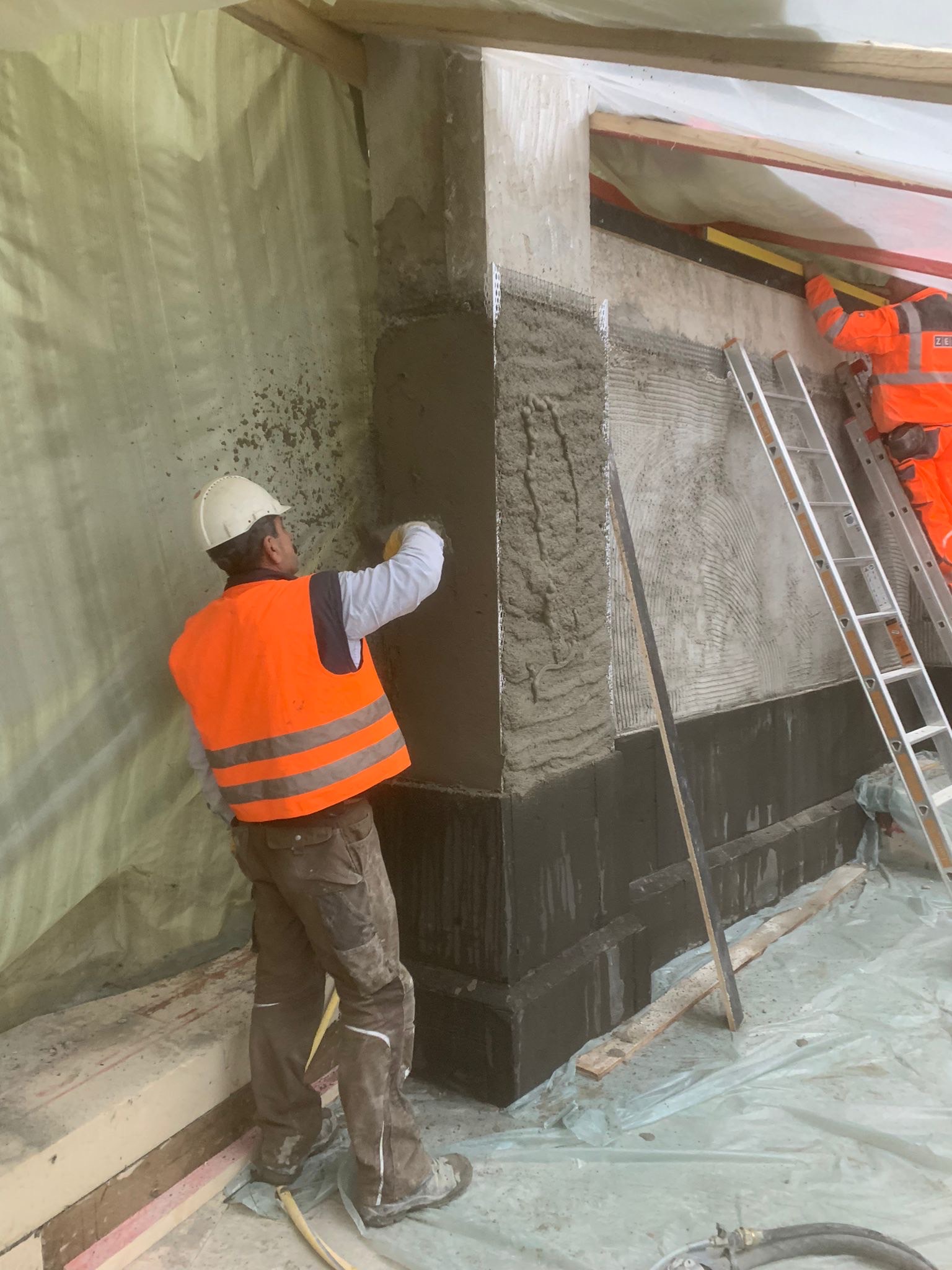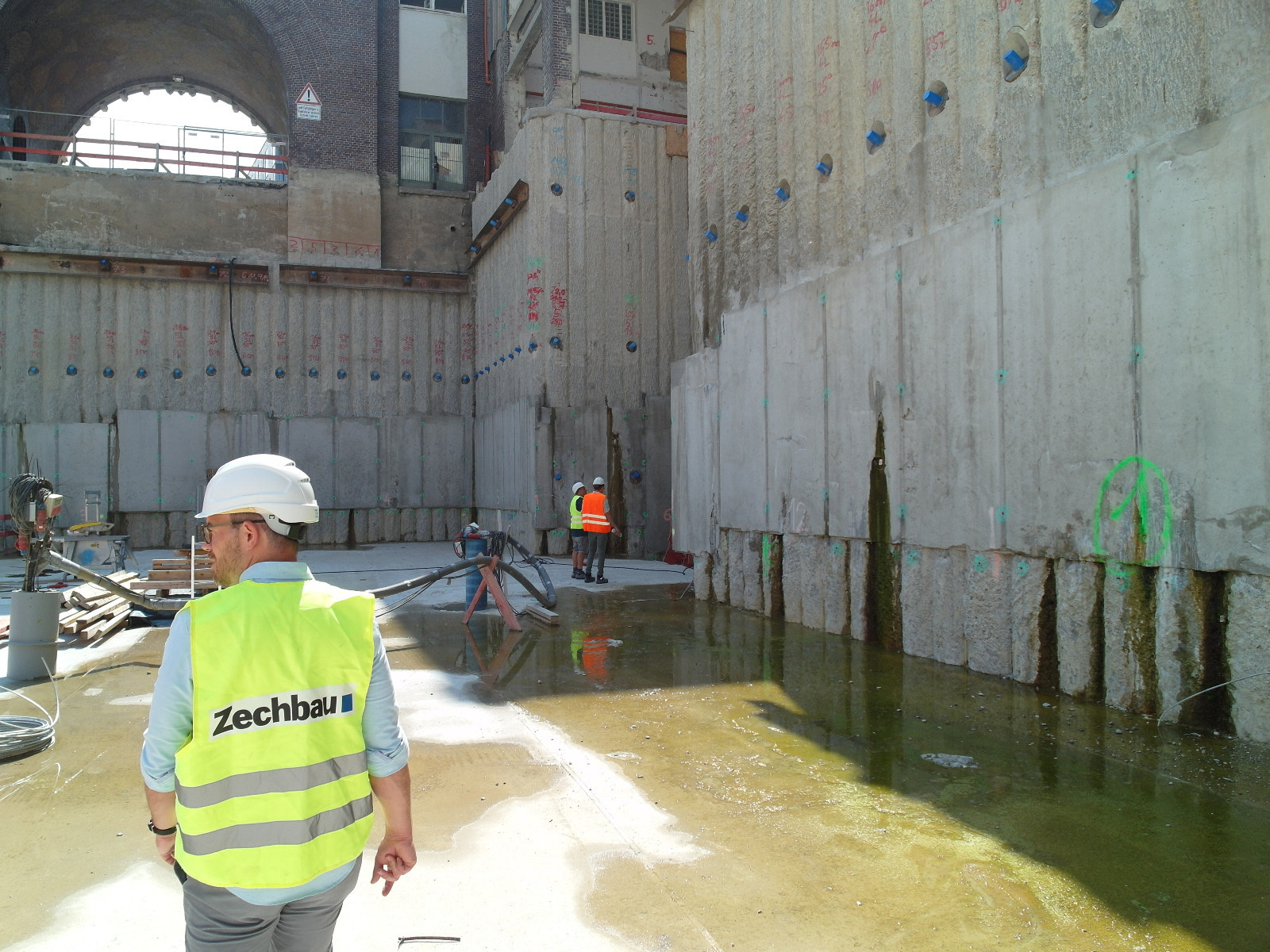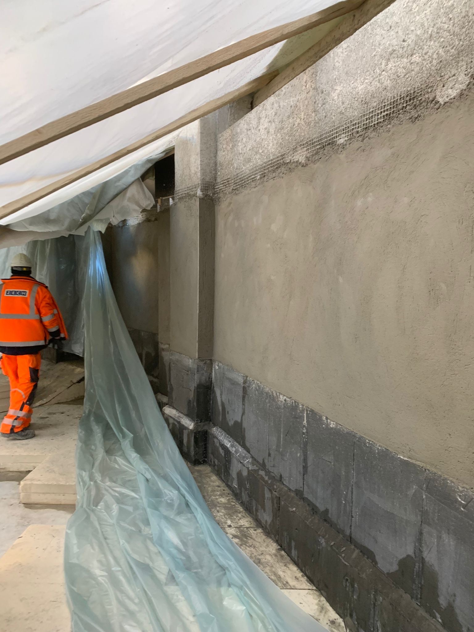 XYPEX ADMIX C-1000 NF was incorporated directly into over 5,000 m3 of structural concrete to provide integral waterproofing. Subsequent crack and joint repair treatments were carried out where required, and more than 3,000 m2 of textile-reinforced concrete incorporating crystalline technology was installed to rehabilitate and waterproof the historic basement structures. As a result, the project achieved reliable long-term performance against hydrostatic pressures of up to 15 meters, where conventional membrane and injection systems had previously failed. The crystalline technology provided permanent, maintenance-free waterproofing and enhanced durability across both new and heritage structures, supporting long-term asset protection for this landmark development.