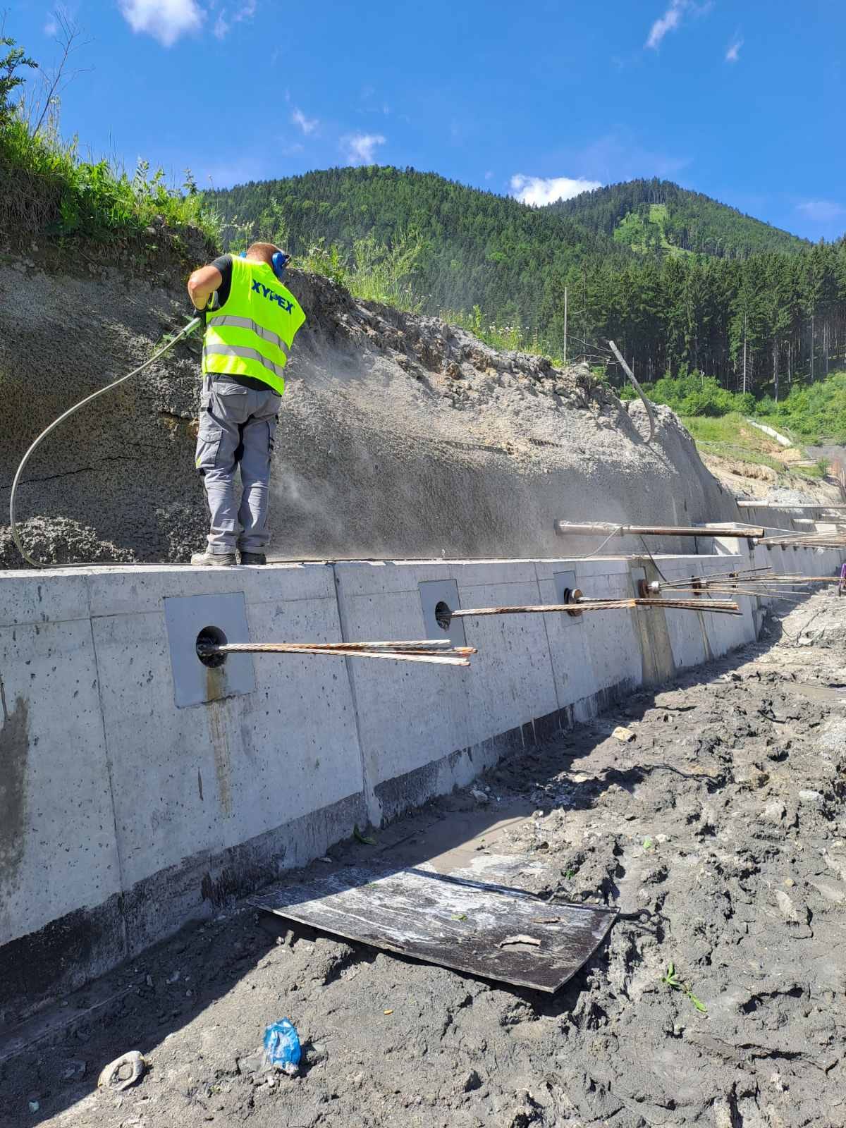 Xypex Modified was applied at the tunnel’s western portal to protect the reinforced concrete slope stabilizers and extend their service life. By increasing the concrete’s resistance to water penetration and aggressive chemicals, the application of Xypex Modified played a key role in ensuring the long-term durability and structural integrity of the slope stabilization system.