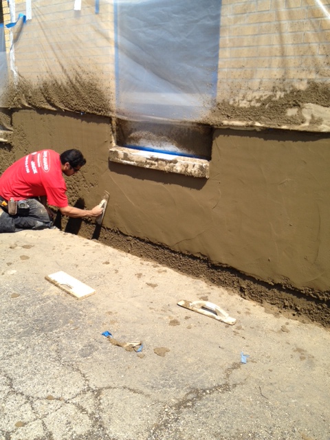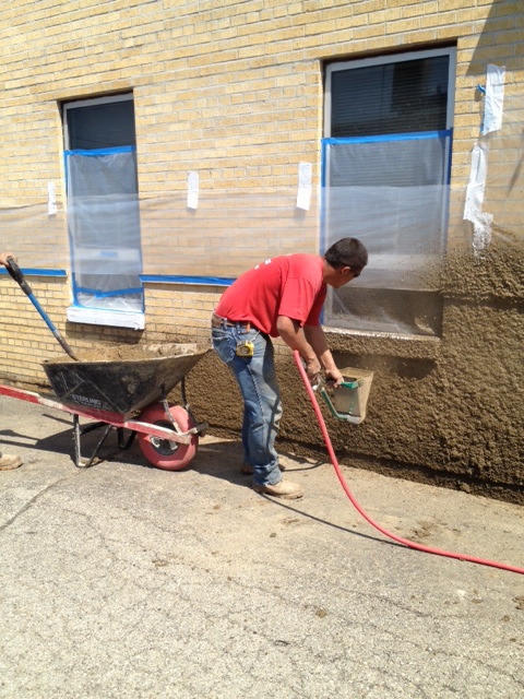 The print shop and equipment is located in a business district not far from the Des Plaines River designated as a flood zone. The bottom 4 feet of exterior walls was treated with one-half inch of Xypex Megamix II on the outside. Dioxide color was added to the Megamix to match the existing brick. In 2013, the flood water rose to 27" high but no water came through the building in the Xypex-treated areas.