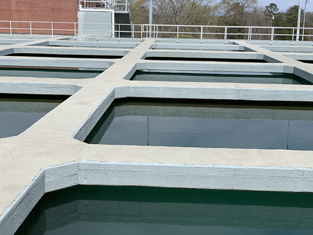 This project commenced late in 2015. The scope of work included repair and resurfacing of the interior and exterior of the sedimentation basins, filters and flocculation basins. Included in the scope of work was coating the non-air entrained concrete top surfaces of walkways and beams using Xypex Concentrate and FCM 80 to protect these horizontal elements from water ingress, chemical exposure and potential freeze thaw damage.